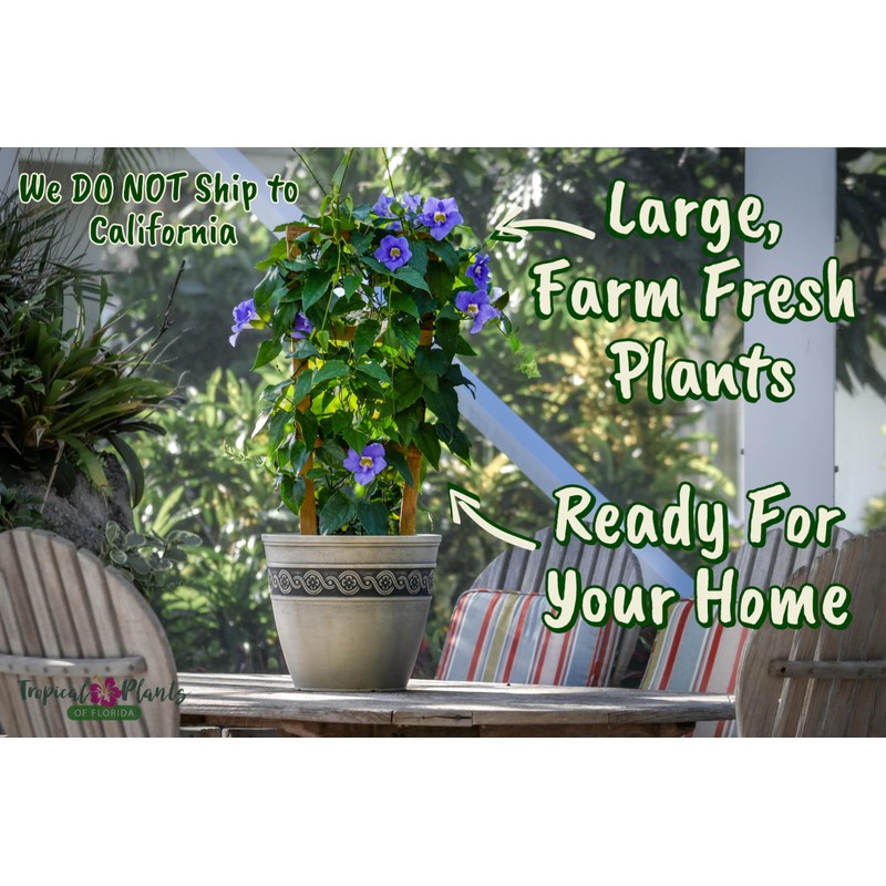 Live Sky Vine Plant Trellis - Thunbergia Purple Flowers - Tropical Plants of Florida - Overall Height 36" (Plant + Fertilizer + Soil + Heat Pack)