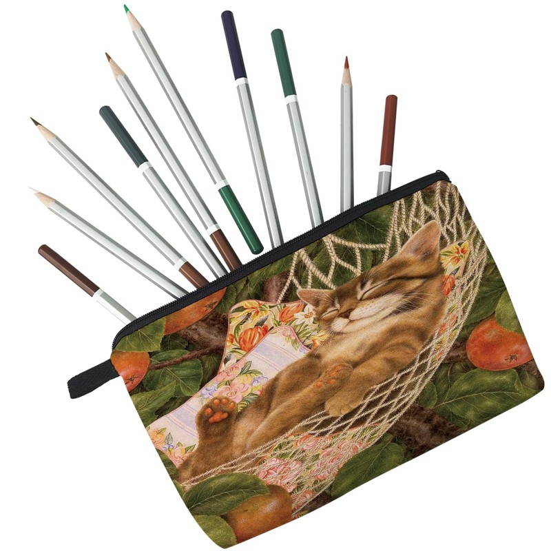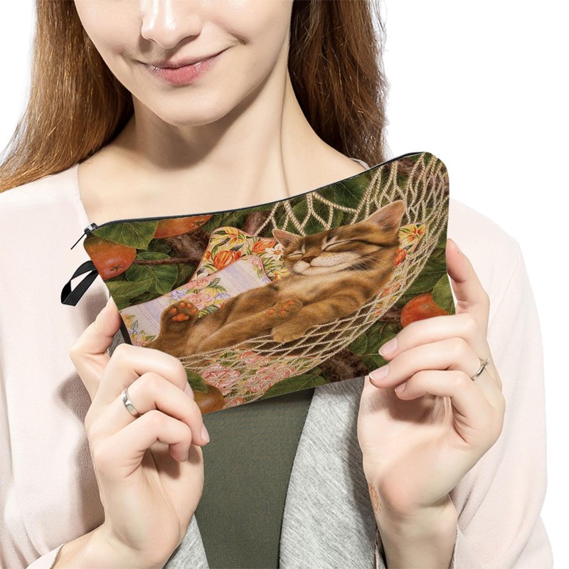 Livel lhood Cosy Cat Makeup Bag Cute Small Cat Oil Painting Organizer Zipper Pouch Sleepy Cat Cosmetic Bag Gift for Cat Lovers Cat Mom Women