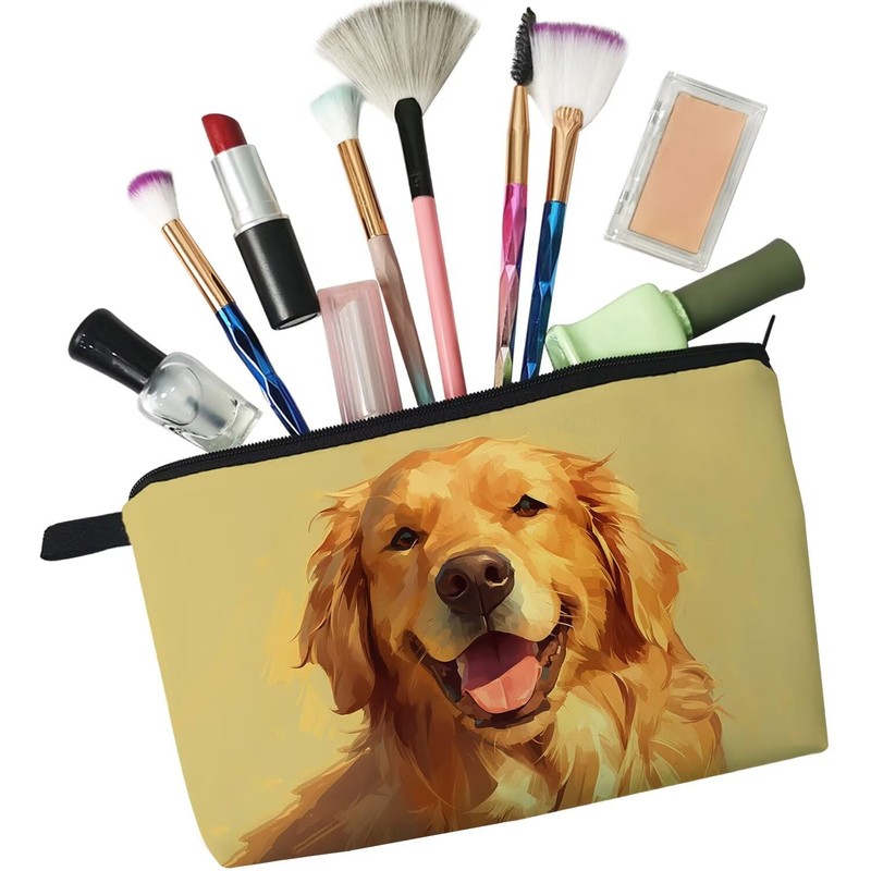 - 2.Fashion Design: The Golden Retriever cosmetic bag has a clear and vibrant design, double-sided printing. There are different kinds of cute, lovely, funny and beautiful patterns to choose. The makeup bag fits both the popular aesthetic and unique personalities