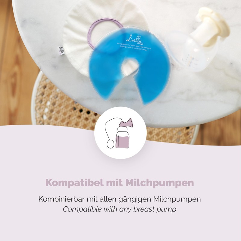 Livella Breast Gel Pillow 3-in-1 Cooling Pad & Heat Cushion for Breast and Breastfeeding - Can be Used with Breast Pump - Relaxing & Milk Flow Stimulating - Thermal Pads 2 Pieces & 2 Protective Fleece