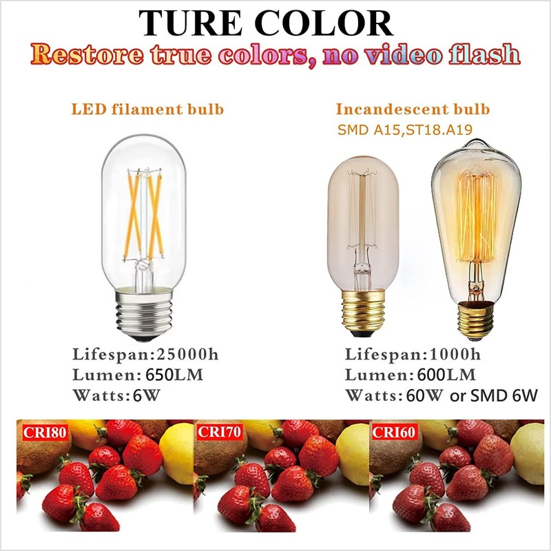 Glare make eyes feel uncomfortable and influence vision. Notoc filament lamp better rendering of irradiated object and no glare, eyes feel very comfortable .