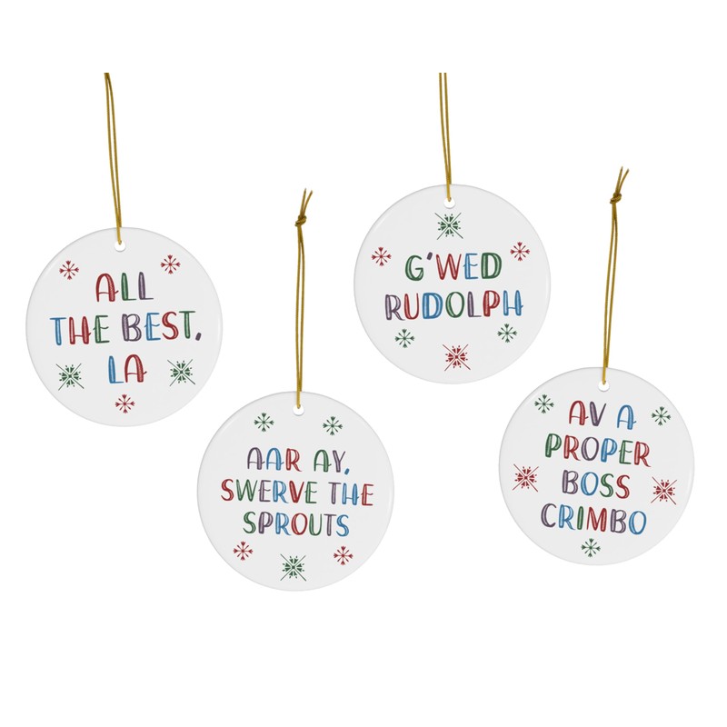 - 🎄Scouse-Themed Ornaments: Set of 4 Christmas tree ornaments with authentic Liverpool dialect sayings for a fun, local touch.