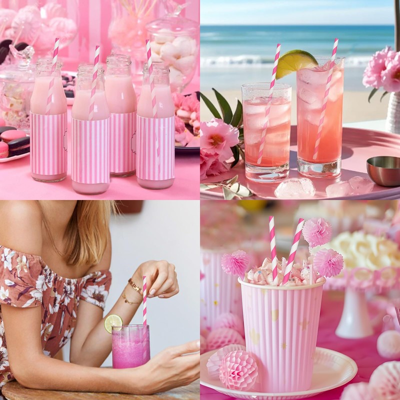 - 【Hot Pink Stripes Design】Cheer up your drinks with our stylish hot pink and white striped spiral paper drinking straws, perfect addition to girls' parties, brithdays, bridal shower, wedding, valentines
