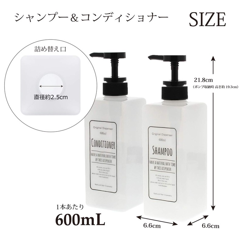 - Shampoo & Conditioner Capacity: Approx. 20.3 fl oz (600 ml) (per bottle)