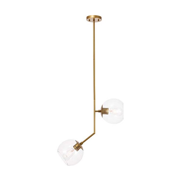 Living District Ryland 2 Light Brass and Clear Glass Pendant