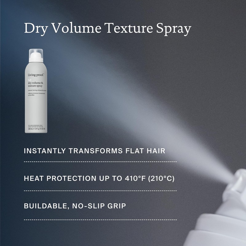 - Dry Volume & Texture Spray delivers instant, revivable, and long-lasting volume and texture for fine hair. And heat protection up to 410 F/210 C.
