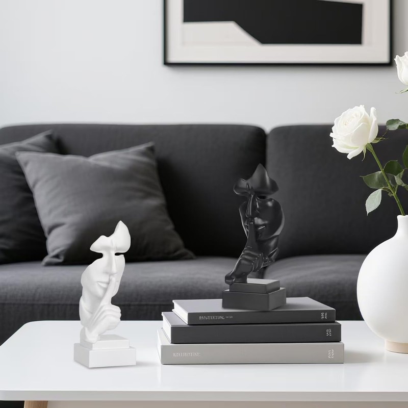 Living Room Accent Home Decor,White Silence is Golden Statue Study Desk Office Shelf Decoration,Plastic Abstract Sculptures for Bedroom Bookshelf Coffee Table Aesthetics Ornaments