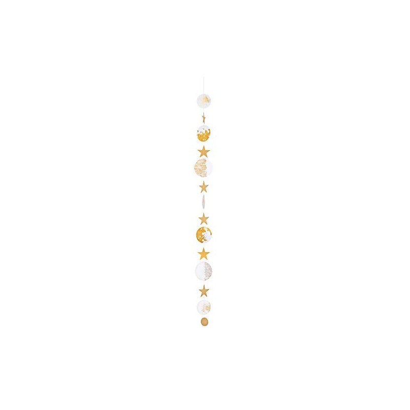 - Material: paper chain, stitched, hot foil stamping. Stars and end circles made of matte gold cardboard.