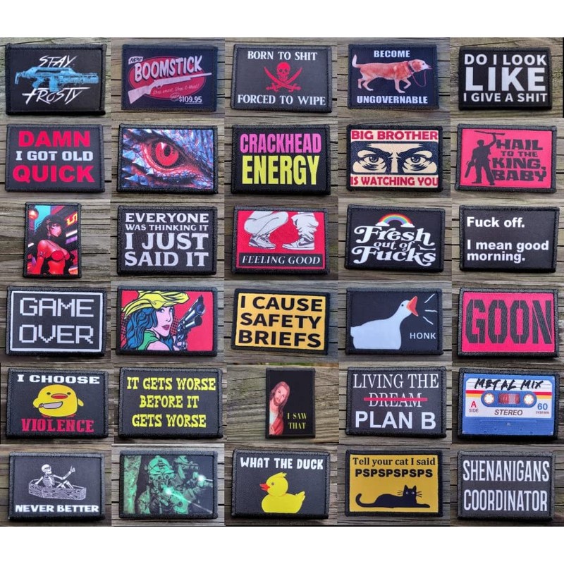 - We Have Hundreds Of Designs To Choose From; Funny Patches; Military Patches; Pinup and Anime Girl Patches; Movies and TV Show Patches; We Have Something For Everyone
