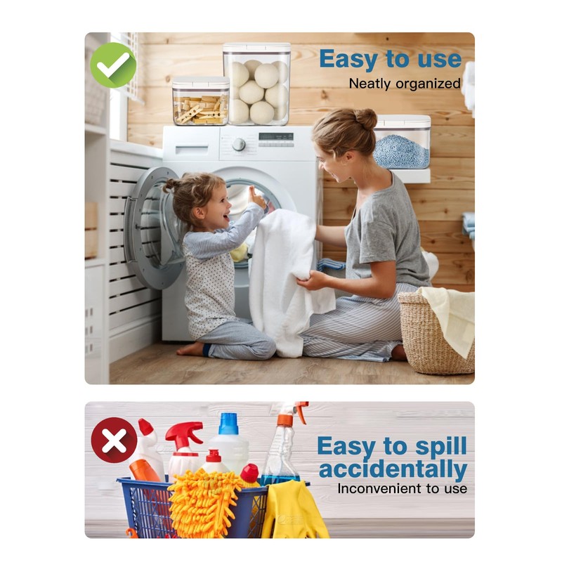 - Multiple Sizes for Efficient Organization: Choose from 4 versatile sizes ( 2.8L, 4.5L, 5.5L and 11L ) or 4pack Set( 1.2L , 2L, 2.8L , 5.5L ) to suit your specific laundry storage needs. Whether you're organizing laundry powder, beads, scent boosters, dryer sheets, or even clothespins, the LivLab Mker laundry containers offers flexible options to fit your space and preferences.