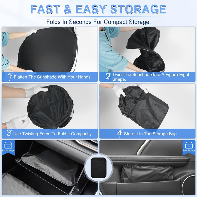 - Foldable & Easy to Store: This car windshield sun shade is lightweight and foldable, allowing for quick installation and convenient storage in your glove box or side door pocket when not in use.