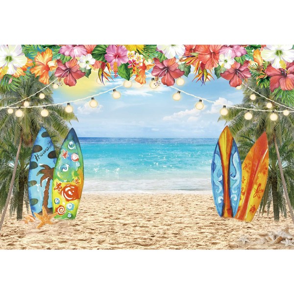 LIVUCEE 7x5ft Hawaiian Beach Photography Backdrop Summer Tropical Luau Palm Floral Photography Background for Hawaiian Party Decorations Photo Booth Banner Supplies