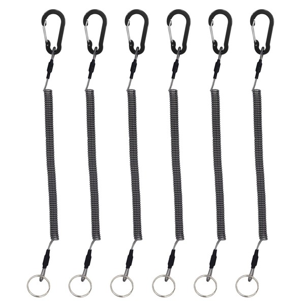 Lix&Rix Coiled Fishing Tools Lanyard Retractable Safty Tethers for Pliers Knife Flashlight Kayak Paddle Leash Keys Rope,6 pcs