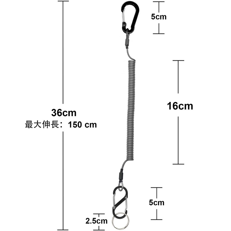 - Curl Cord Length: 6.3 inches (16 cm), Maximum Stretch: 59.1 inches (150 cm), Maximum Safe Load Capacity: 13.2 lbs (6 kg), Includes Carabiner, S-shaped Carabiner, Ring