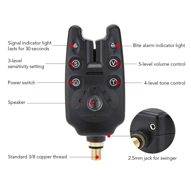 - 【ADJUSTABLE SENSITIVITY】The fishing bite alert has LED alarm signal with high output speaker, the tone, volume and sensitivity can be adjusted to suit your needs.