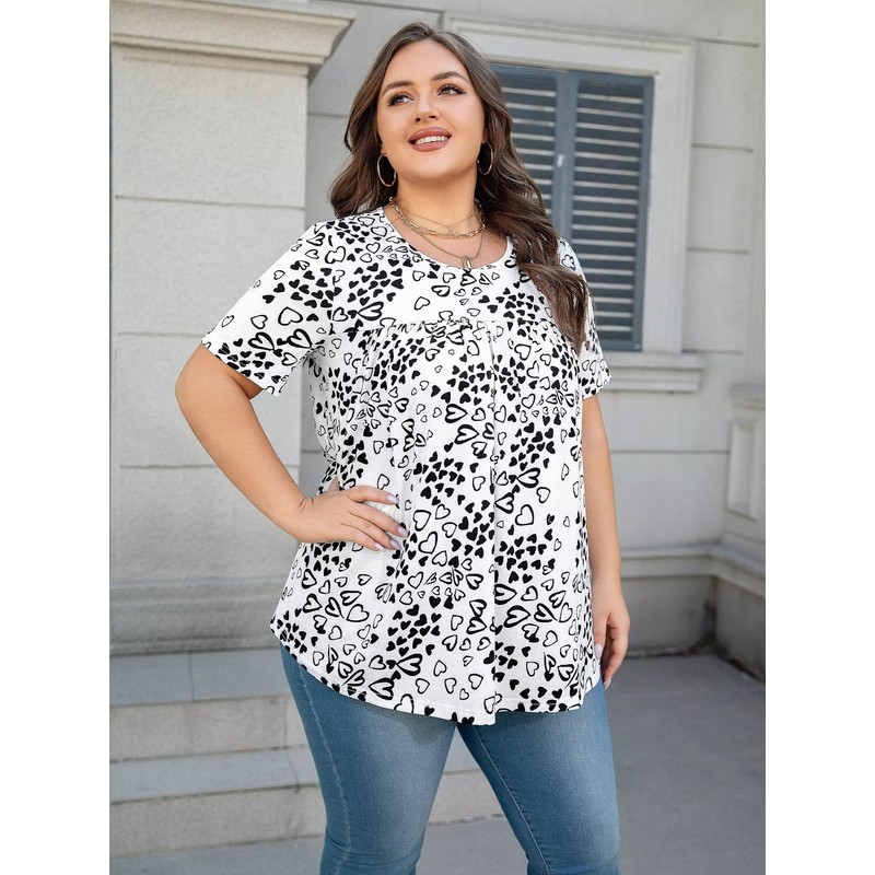- Design & Fit: Designed with a loose fit, this plus-size tunic features a flattering crew neck and front pleated detailing, adding a touch of charm to your look. The extended length provides excellent coverage, effortlessly concealing the belly and hips for a confident, stylish silhouette.