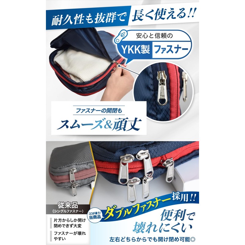 LIXIA Travel Compression Bag, 2-Way Space Saving, YKK Double Zipper, Travel Pouch, gray