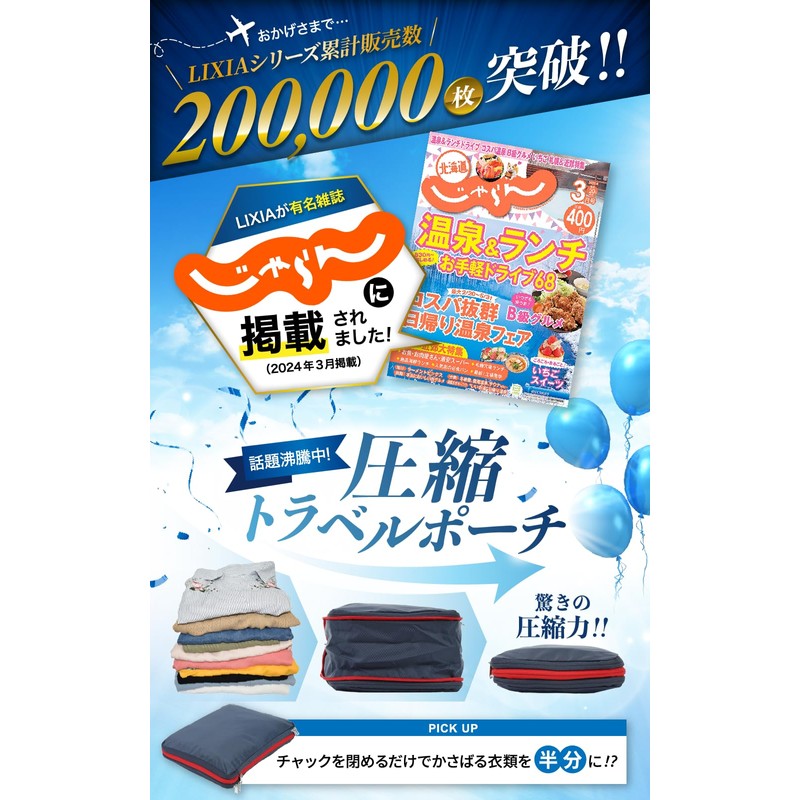 - (Easy Compression) Quickly cleans bulky clothing with ease. This bag can compress about 50% by simply folding your clothes and closing the zipper. Enjoy your luggage free travel with LIXIA compression bag!