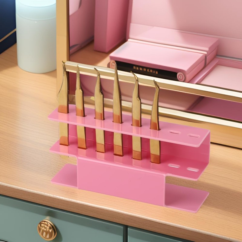 LIXIMMAZN 8 Holes Acrylic Tweezers Holder, Tweezers Stand Display Organizer for Eyelash Extension Supplies (Pink 8 Holes)