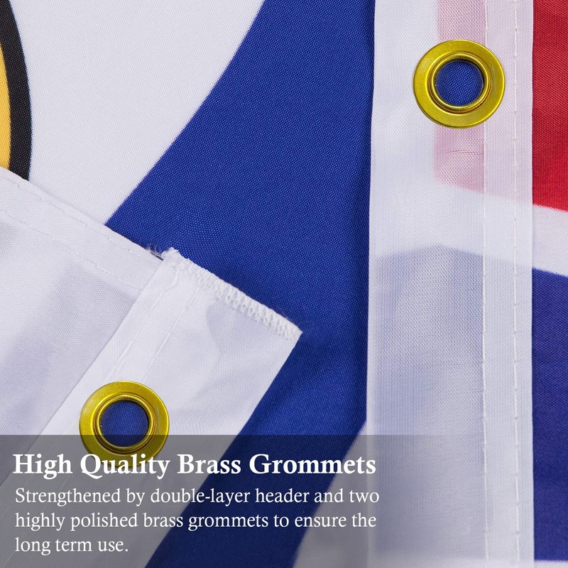 - Reinforced with two oversized brass grommets and two stitched sewing strips for easy hanging. Gives the flags a classic look.