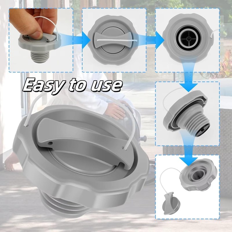 - 【Unique design】The one-way inflatable valve cap is designed with a screw air plug and screw cap cleverly designed to prevent air leakage and maintain a stable air pressure in the bathtub, the portable cap rope allows you to easily grab the cap to avoid slipping, .it is a perfect replacement for your inflatable hot tub.Ideal for homeowners, hotels, outdoor gatherings, and winter upkeep of inflatable equipment.