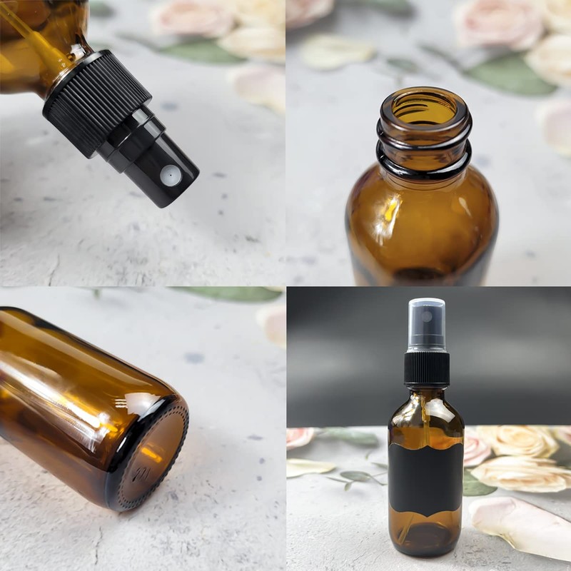 - GREAT VALUE - The amber glass spray bottles set comes with 60ml Amber glass spray bottle x 2, Black mist sprayer x 4, Funnel x 1, Dropper x 1, Label x4.