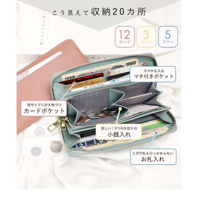 - When opened, there are 20 pockets that can neatly sort cards, bills, receipts, coins, etc. The coin purse comes with 3 compartments, so it is recommended for storing small items such as accessories and medications. Comes with a skimming prevention function so you can rest assured even when it comes to crime prevention