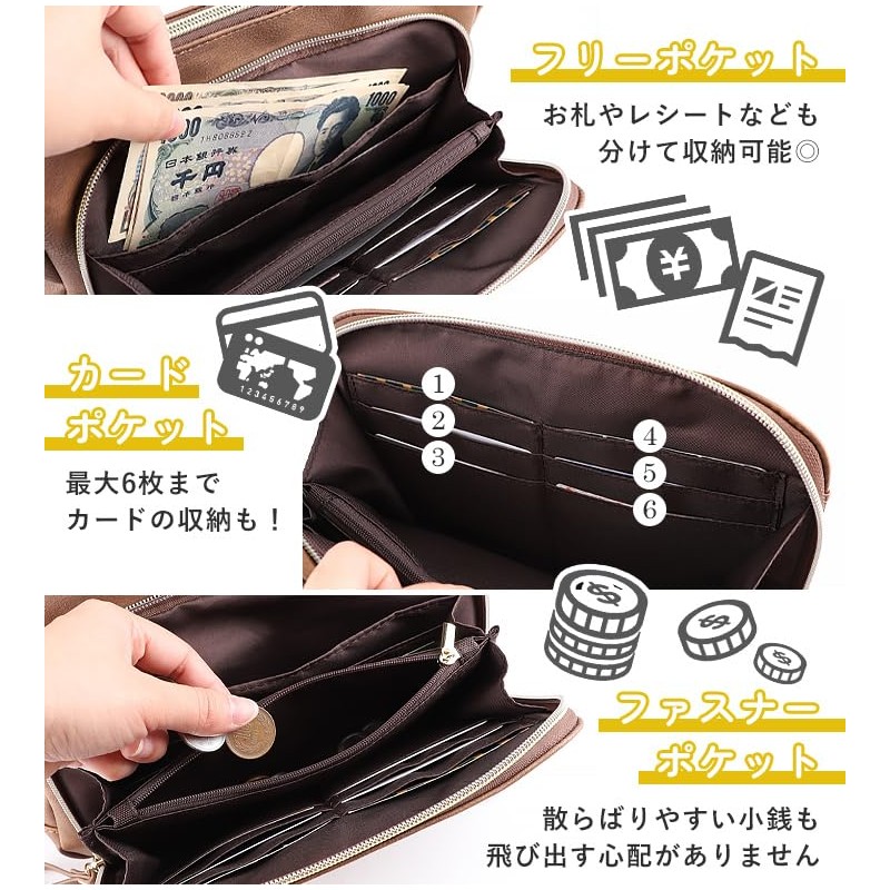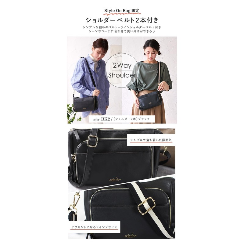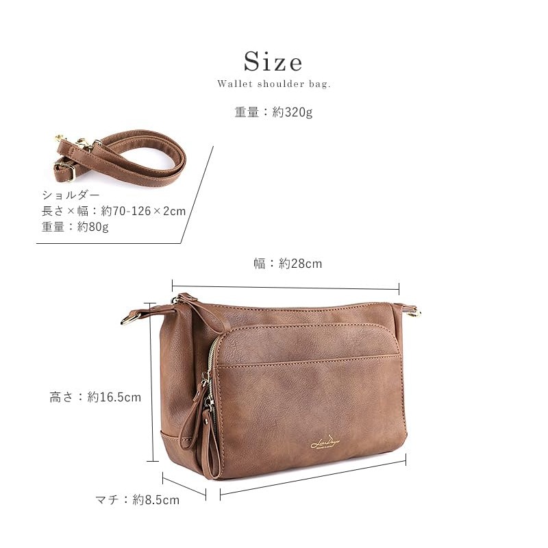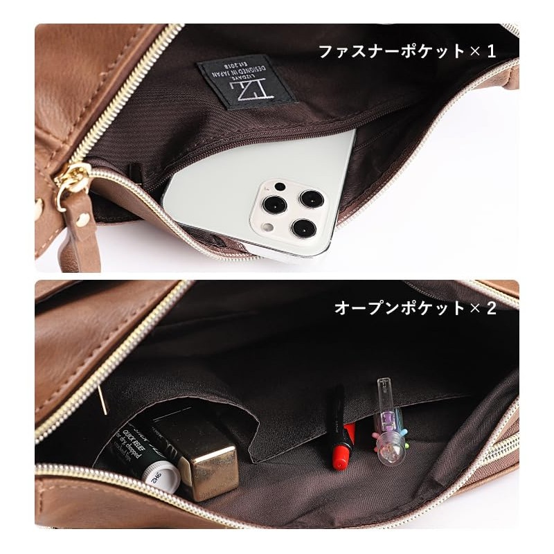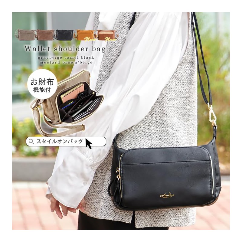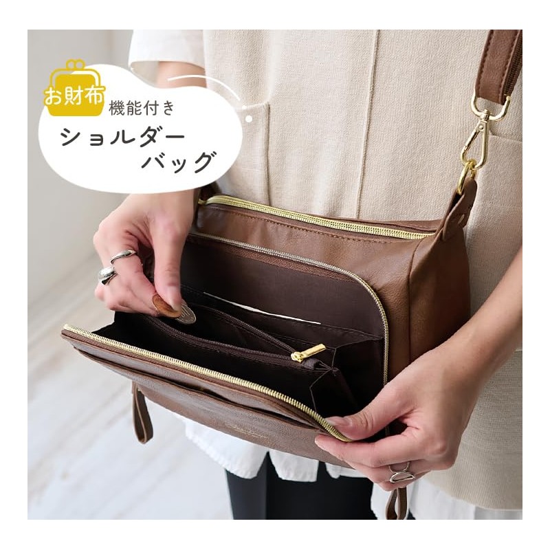 - A shoulder bag that gives off a mature look like genuine leather. The front double zipper pocket has a pocket that can also store coins and cards, making it more convenient to use as a wallet