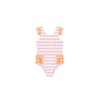 - Make a splash with this adorable swimwear that combines comfort, durability, and style in one delightful package.it not only stylish but also practical for all kids water activities.Get your little one ready for some fun in the sun with our Girls' Ruffle Striped Swimwear.