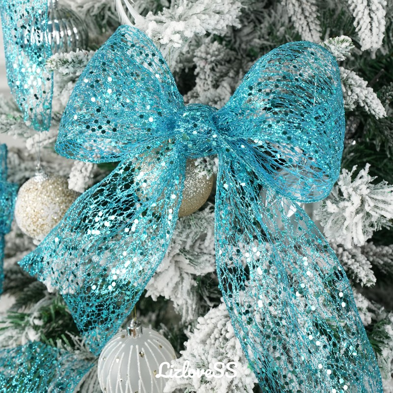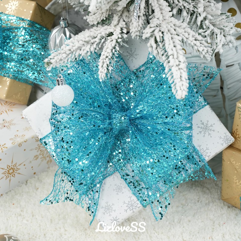 - ✨Durable and Stylish: The Christmas tree ribbon wired 4 inch and teal sequins & glitter with wired edge ribbon provide excellent support for creating beautiful, long-lasting bows and decorations.