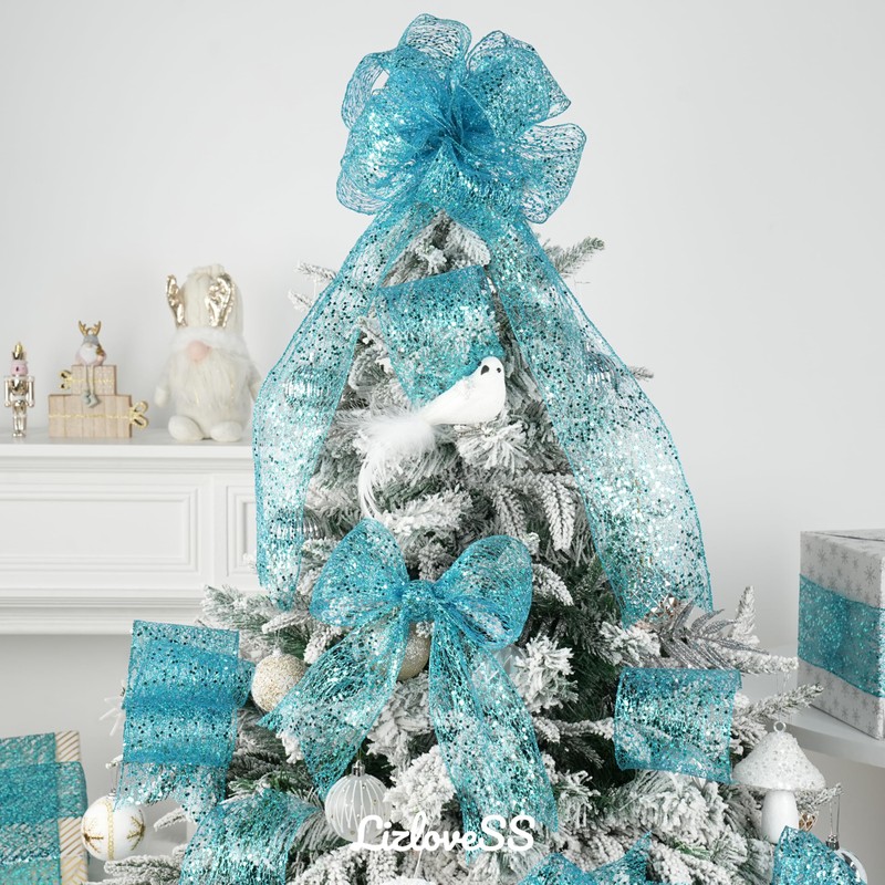- ✨Versatile Decoration: The 4" Teal Metallic Sequin Glitter Tree Ribbon and teal wired ribbon are perfect for adding a touch of elegance to your Christmas tree, wreaths, and other holiday decorations.