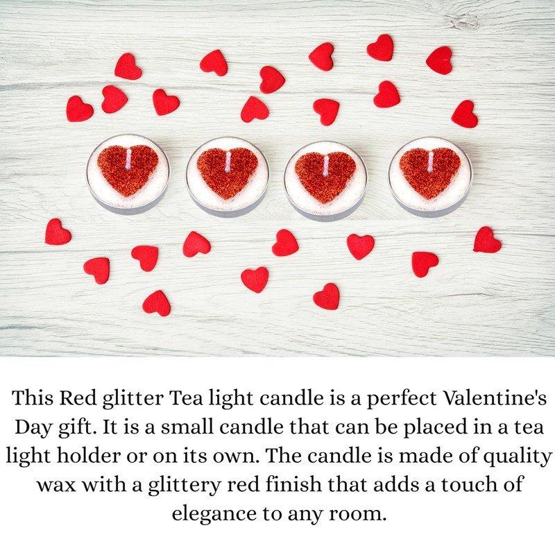 - This beautiful candle features a charming red heart design, perfect for adding a touch of love to your home décor. The glitter heart adds an extra sparkle and shine, making it an ideal addition to any Valentines Day celebration.