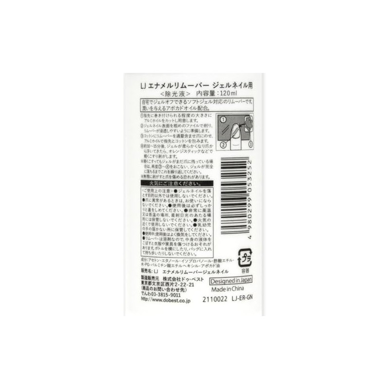 LJ Enamel Remover for Gel Nails Moisturizing Avocado Oil Formulated 4.2 fl oz (120 ml) (Set of 2)