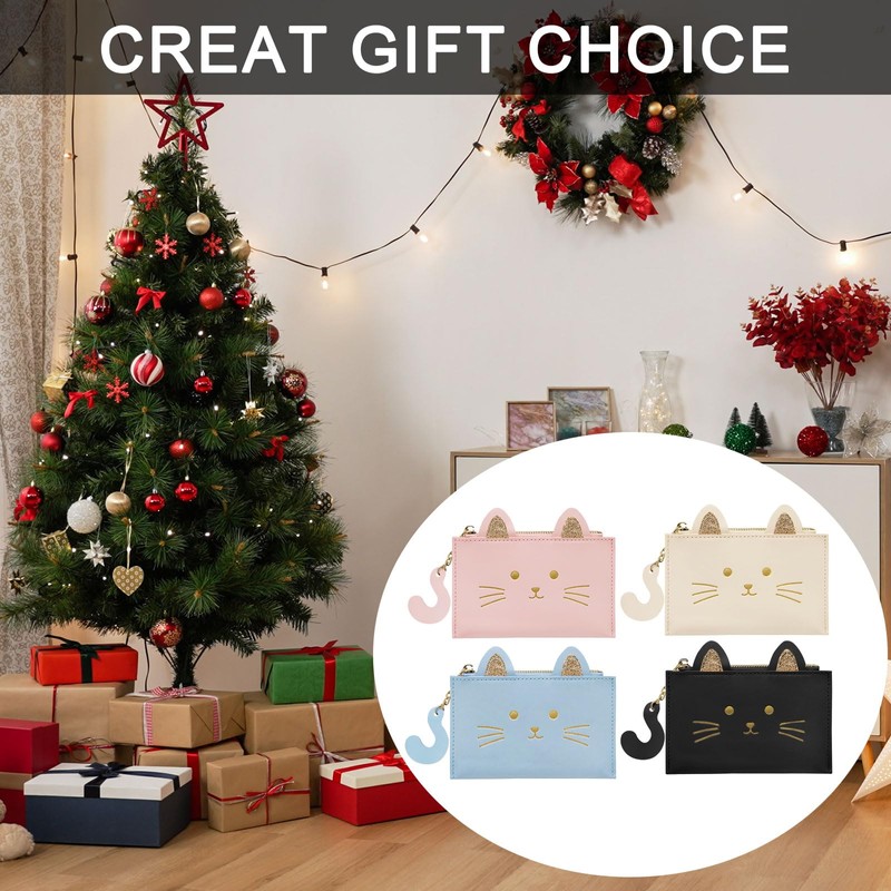 LJCZKA Cat Credit Card Holder for Women Small Cute Wallet Slim Zip Card Case ...