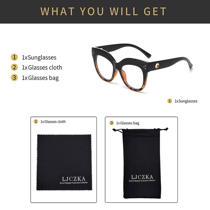 LJCZKA fashionable and unique oversized cat eye glasses are the recent popular blue light blocking glasses, whether with high-class clothing or ordinary simple items, can light up your outfit.