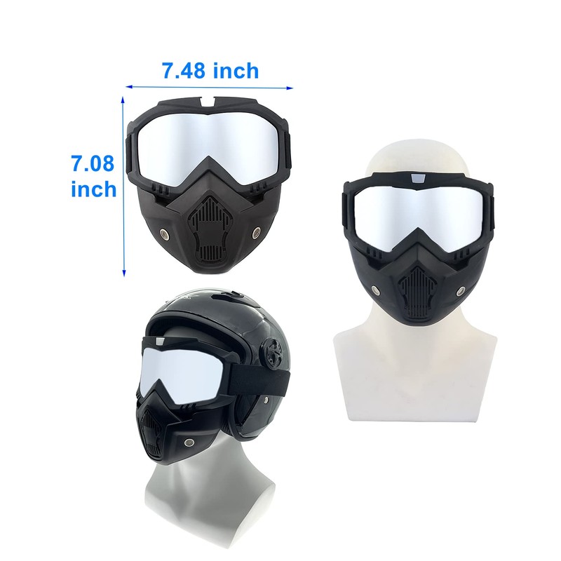 - PROFESSIONAL PROTECTION --- √ Motorcycle goggles with a detachable mask not only increase the protection area, but also better protect your eyes out of wind , bugs, dust, sand, and even help to prevent cold air. Also the goggles can be used separately as needed.