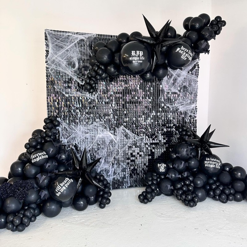 LJIE-House Black Shimmer Wall Backdrop 6FTx4FT Party Photo Backdrop Sequin Wall Backdrop for Anniversary Halloween Engagement Birthday Decorations
