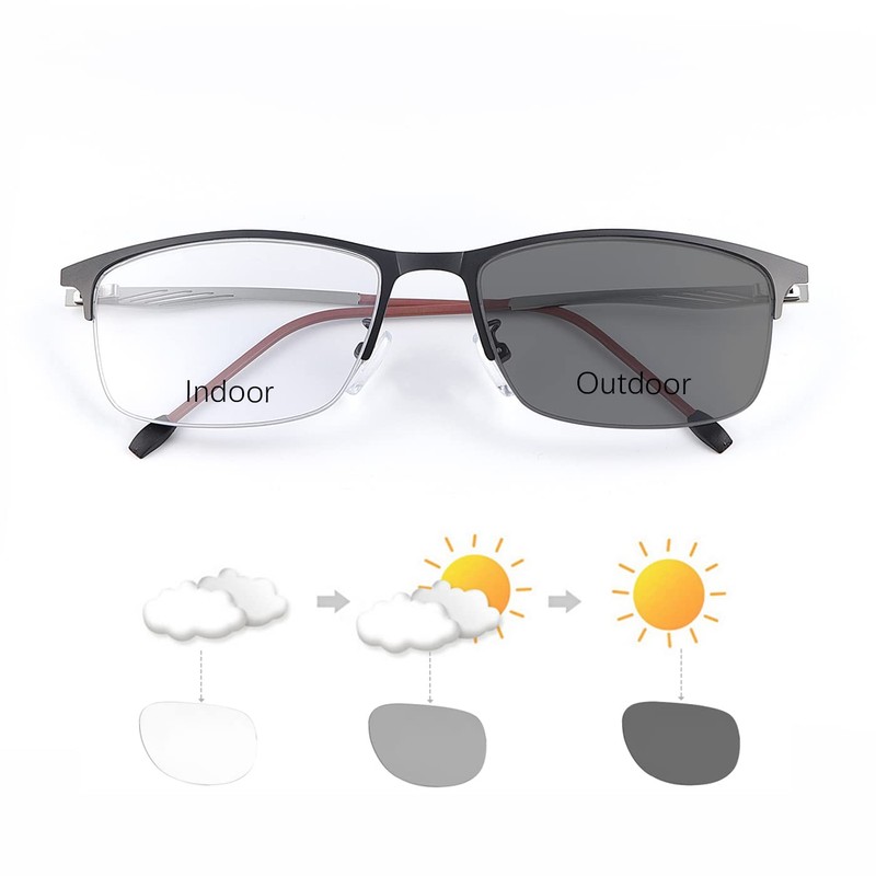 - Photochromic multi-focal reading glasses: the photochromic lenses of the reading glasses are clear indoors or at night and automatically darken to a sunglasses tint when exposed to UV sunlight. The lenses begin to clear once they are no longer exposed to UV sunlight and become significantly lighter and mostly clear within minutes. They absorb UV radiation that could otherwise damage your eyes.