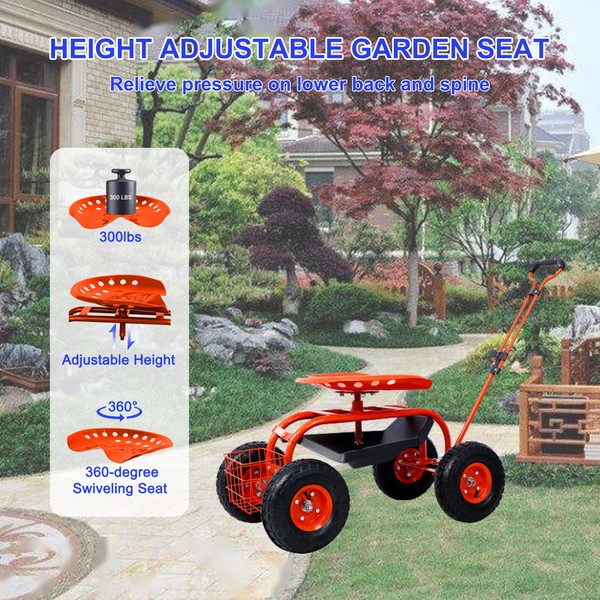 The Garden Cart Rolling Scooter is a gardening companion designed to enhance your gardening experience. With a focus on convenience and comfort, it features an adjustable height swivel seat that allows you to navigate your garden .