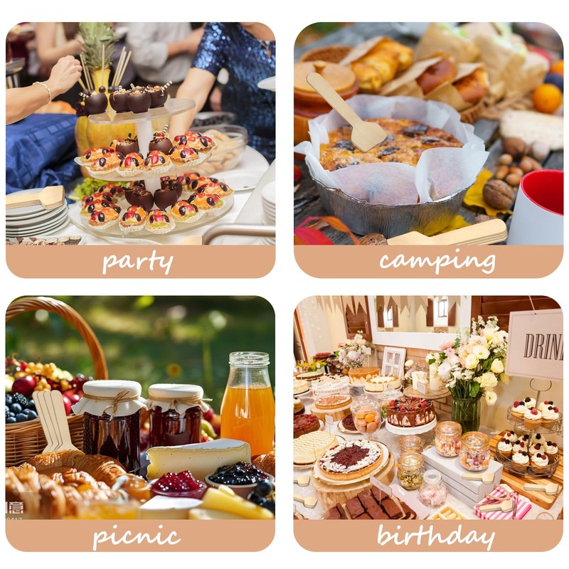 - [Multi-scenario use]: Our mini wooden spoons are perfect for parties, camping, picnics, birthdays, weddings, food events, ice cream shops, coffee shops and also great for crafting