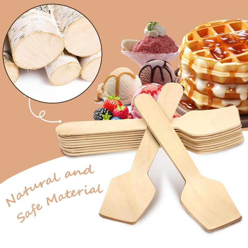 - [Multipurpose]: Our disposable mini wood tasting spoons are square-headed, and easy to scoop out food for eating, sampling various samples, tasting desserts, ice cream, honey, pudding, jam, cupcakes, yogurt, salt, sugar, and other side dishes