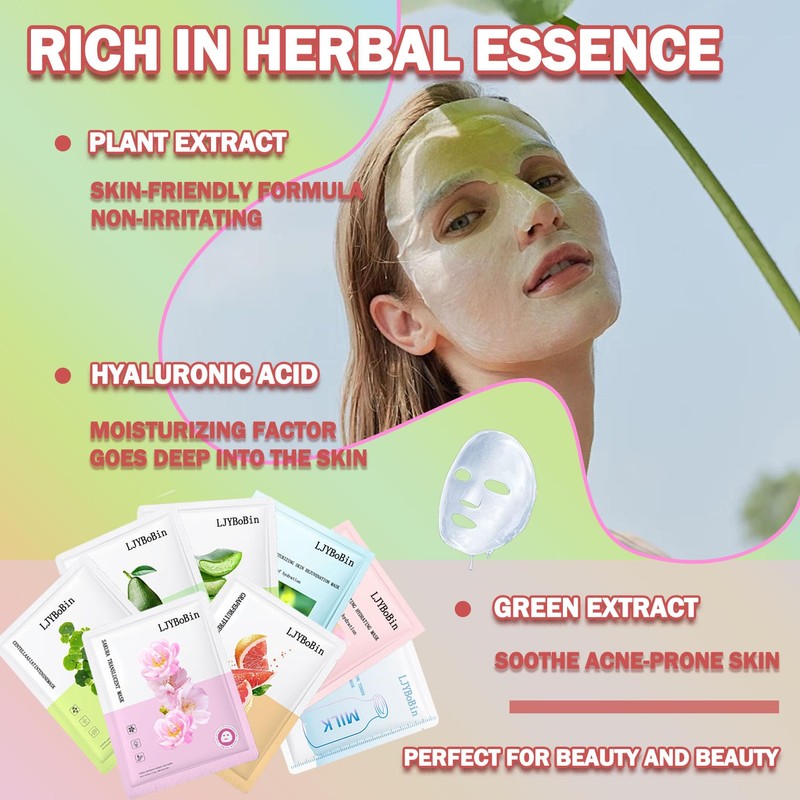 LJYBoBin 8PCS Face Masks Variety Set,Soft Long Lasting Hydrating Sheet Mask,Moisturizing Face Masks Skincare Set,Facial Mask Skin Care Gift Set Suitable for All Skin Types