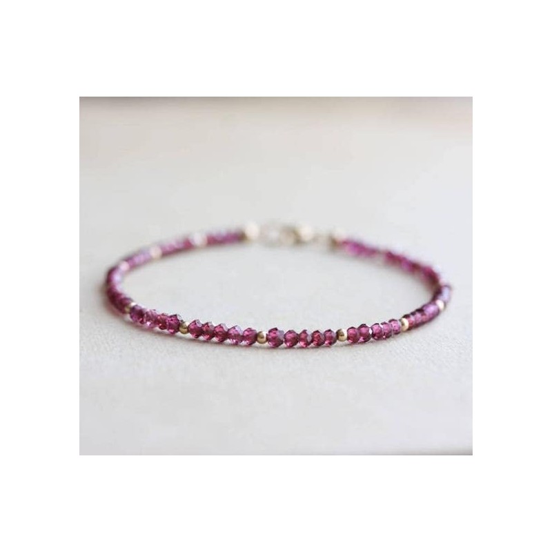 - Product details: gemstone type: garnet, gemstone beads size: 2-2.5 mm, gemstone beads shape, rondelle, gemstone beads cut, faceted, gemstone beads colour, red, clasp metal plating, gold, bracelet length: 7 inches
