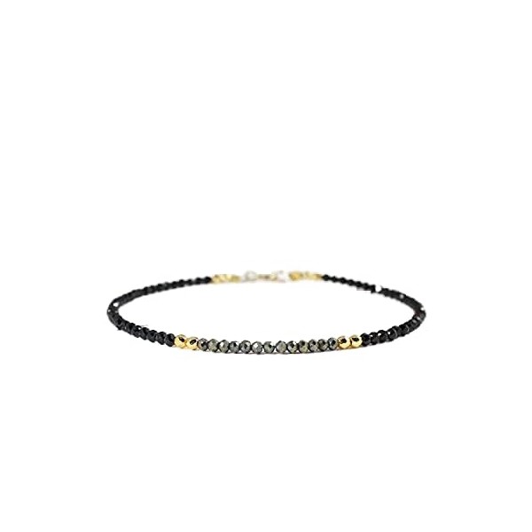 - PRODUCT DETAILS :- [ Gemstone Type :- black spinel & copper pyrite ]--[ Gemstone Beads Size :- 2.5mm ]--[ Gemstone Beads Shape :- round ]--[ Gemstone Beads Cut :- faceted ]--[ Gemstone Beads Color :- ]--[ Metal Beads :- gold ]--[ Bracelet Length :- adjustable]