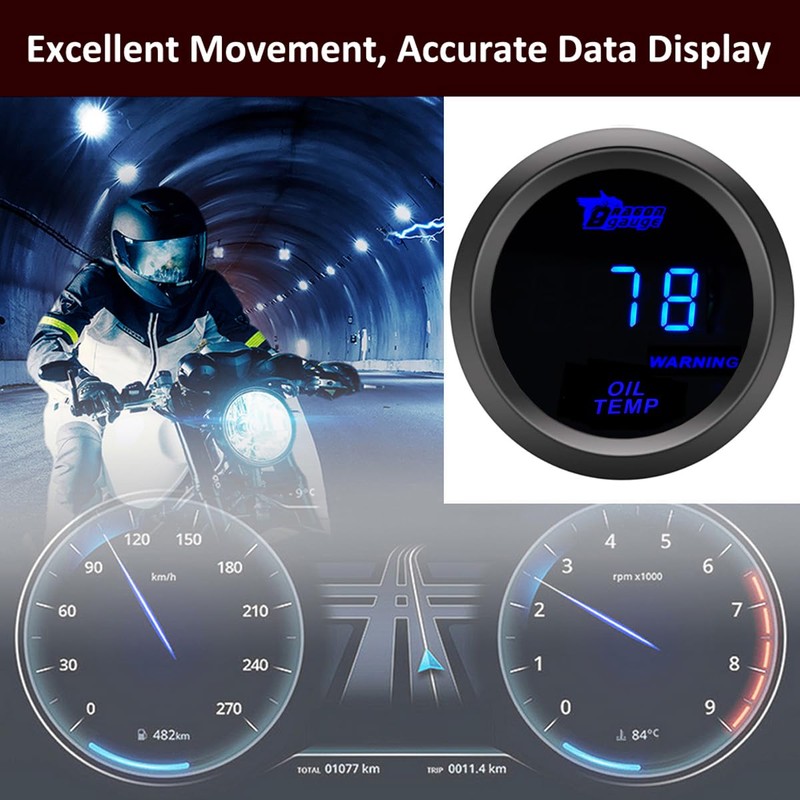 - 【 Oil Temperature Gauge 】 Oil Temp Gauge Read: 40 to 150 Celsius. mainly used to display the temperature of the engine oil to help the driver monitor the working status of the engine. With reminder function, Warning light will light up when water temp reaches over 120 Celsius.