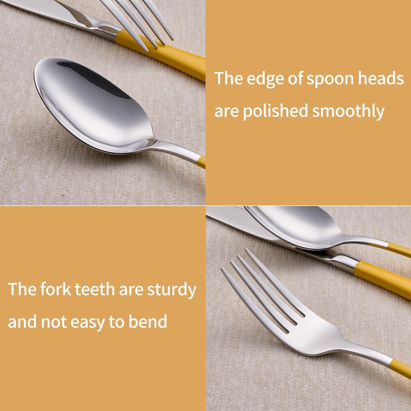 LKTDYMEG 20-Piece Yellow Silverware Set 18/0 Stainless Steel Silverware Set Yellow Handle Cutlery Set Service for 4 Dinner Knives Forks Spoons Set Flatware Set Finish Dishwasher Safe