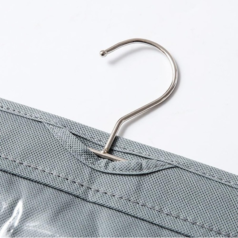 - Easy to Use Foldable storage bag with stainless steel hooks for easy hanging. Foldable design, easy to store when not in use. Suitable for cabinets or shelves etc.