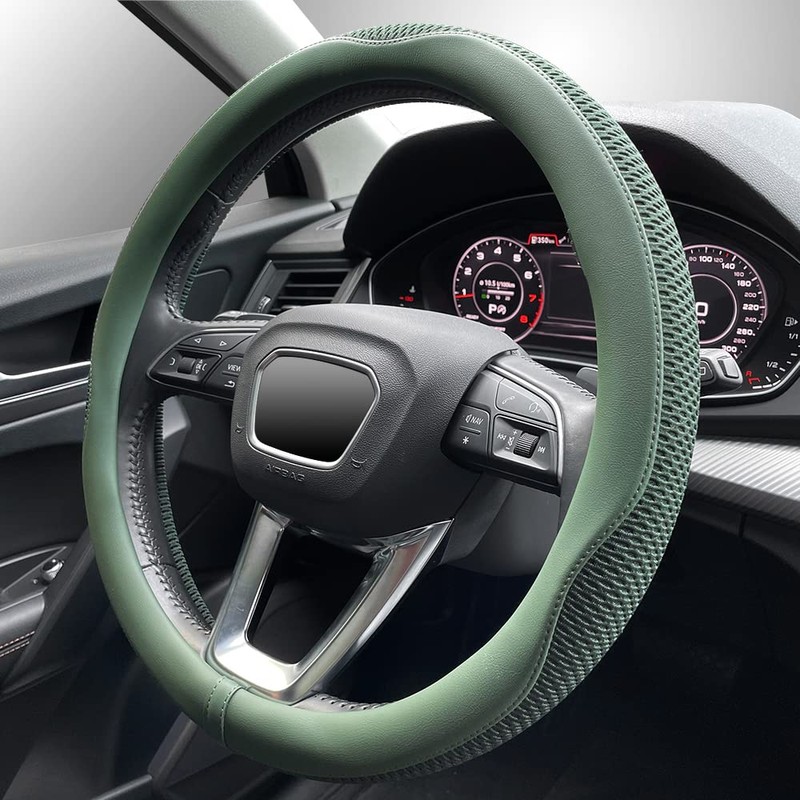 LKWLIKEI Car Steering Wheel Cover, Universal 15 inch, The Latest Microfiber Leather Breathable Technology Fabric, Non-Slip, Comfortable, Warm in Winter and Cool in Summer, Green