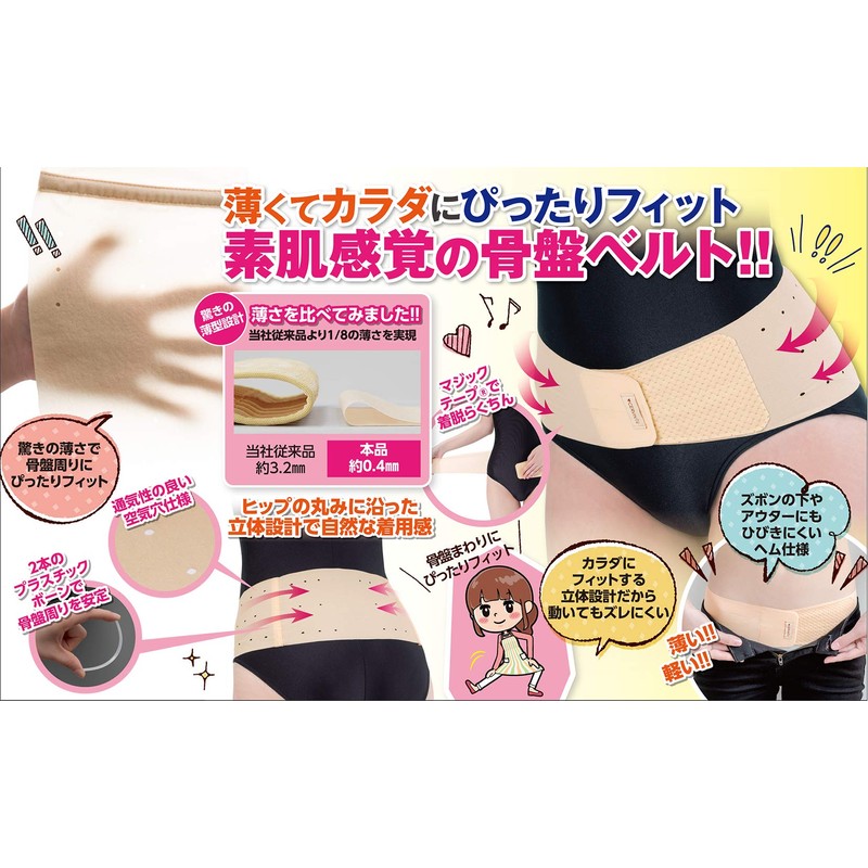 - 薄くてカラダにぴったりフィットする素肌感覚の骨盤ベルト