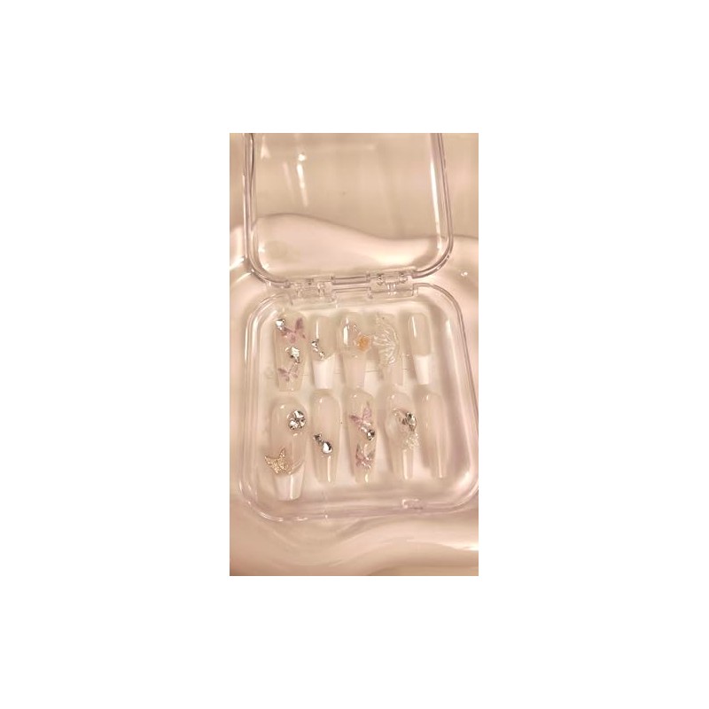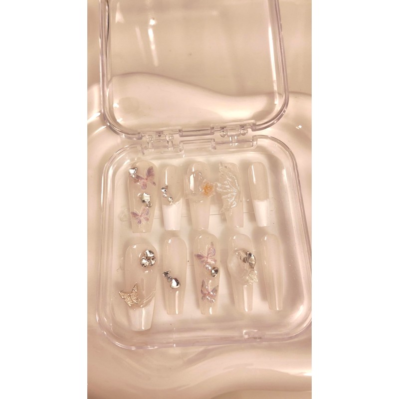 LL Nails - Trendy Handmade Press On Nails (Butterfly Grace White, Small)